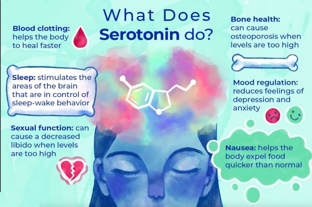 کاهش سروتونین در خون باعث اختلال در فعالیت عصب واگ میشود، عصب واگ سیگنالها را بین مغز، روده و سایر اندامها منتقل میکند.